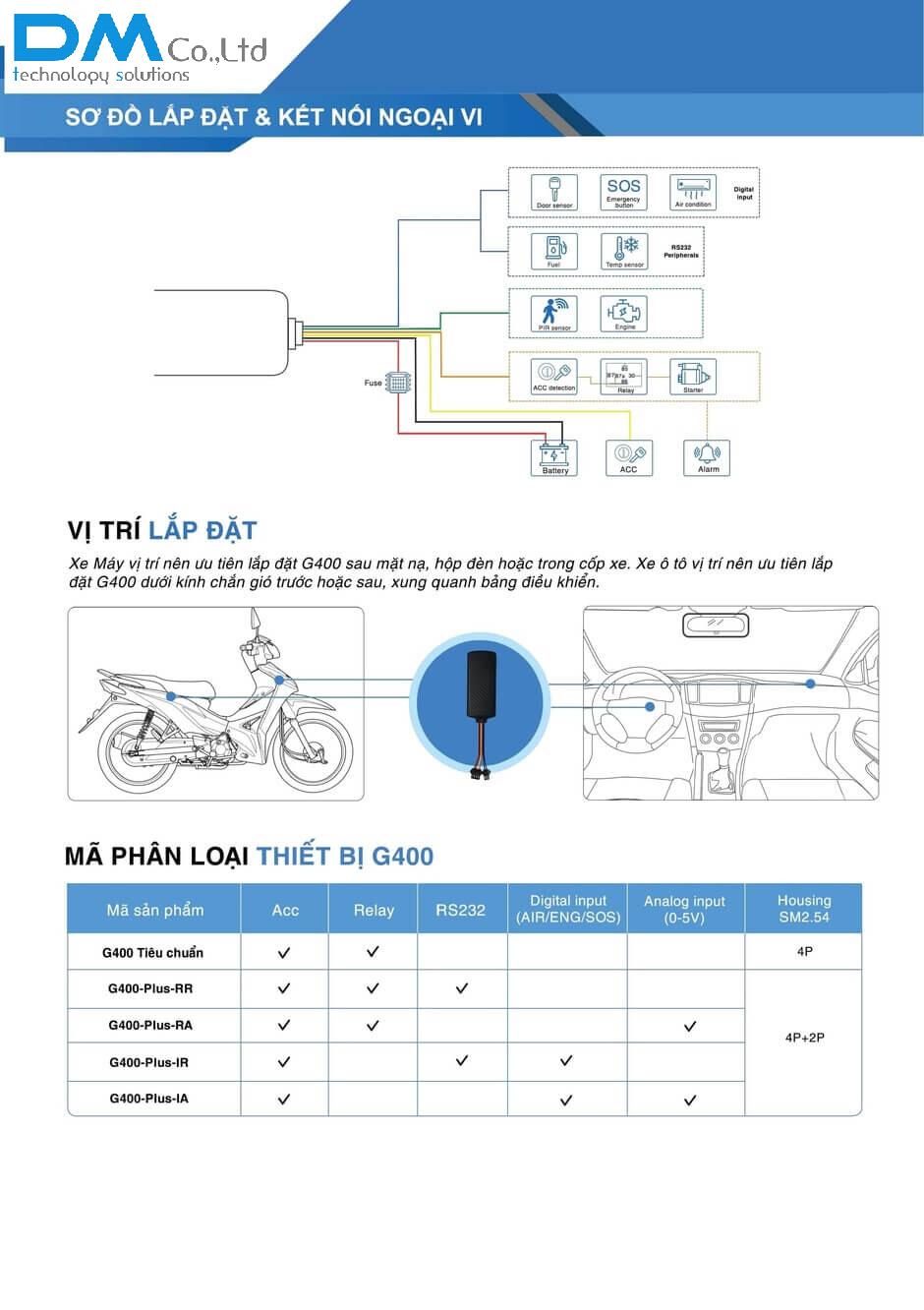 Thiết bị định vị giám sát hành trình G400 4G cho ô tô xe máy